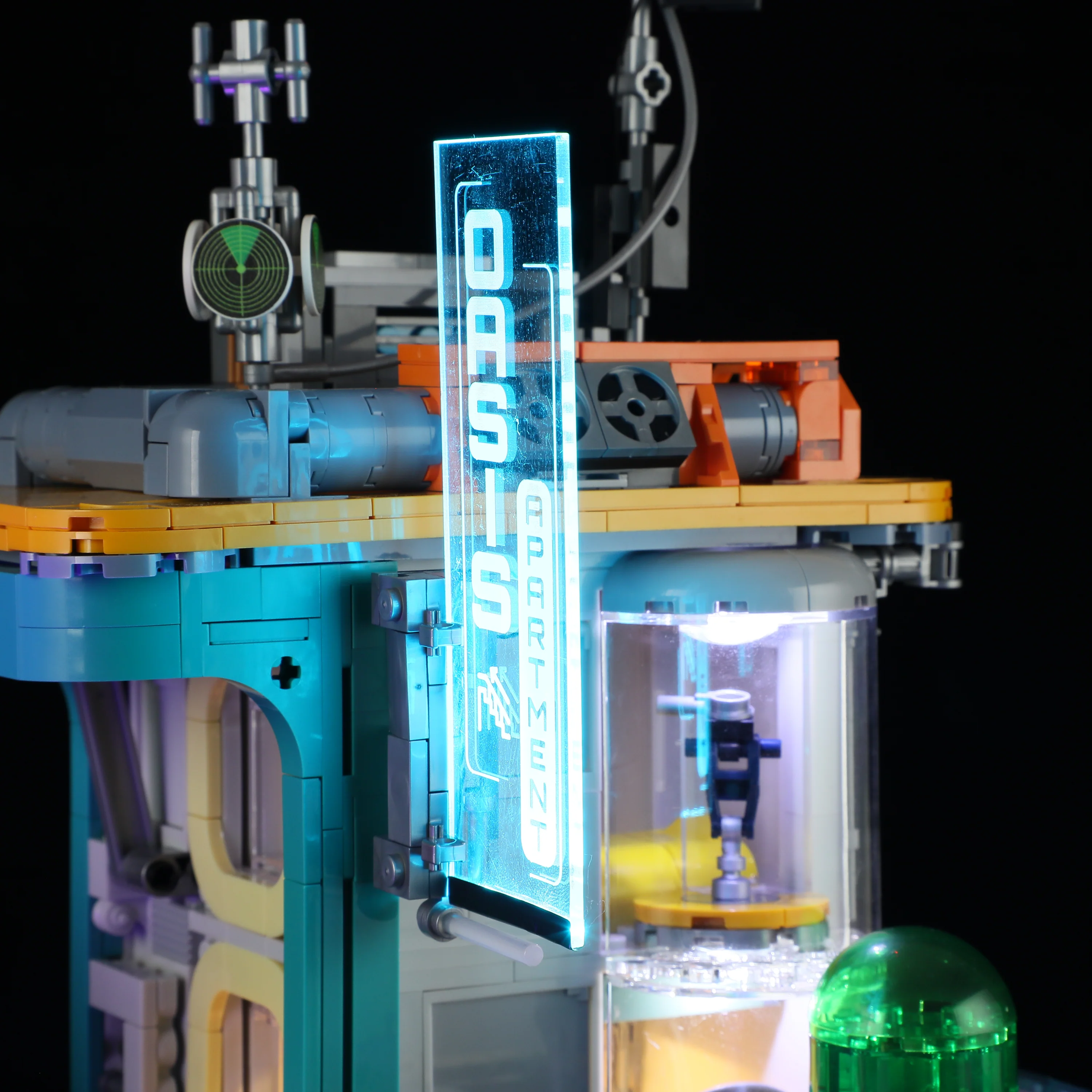 Beleuchtung und Cyberpunk im perfekten Zusammenspiel. Neben der bekannten Beleuchtungstechnik bietet das Set beleuchtete Schilder und Lichtleiter. Dazu kommt ein stimmiges Design, ein sehr durchdachtes Gesamtpaket und eine hervorragende Anleitung