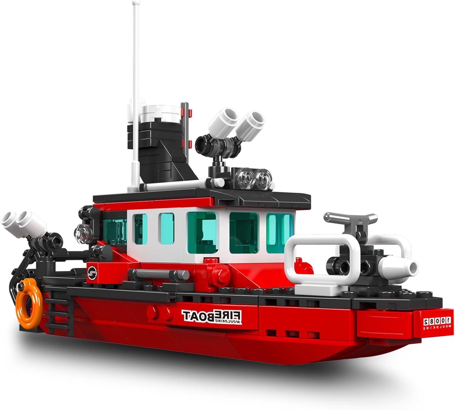 Dieses detaillierte Modell ist einem Feuerlöschboot nachempfunden. Mit 315 Teilen ist dieses Set perfekt für diejenigen, die akribische Details und Funktionalität auch bei kleinen Modellen schätzen.