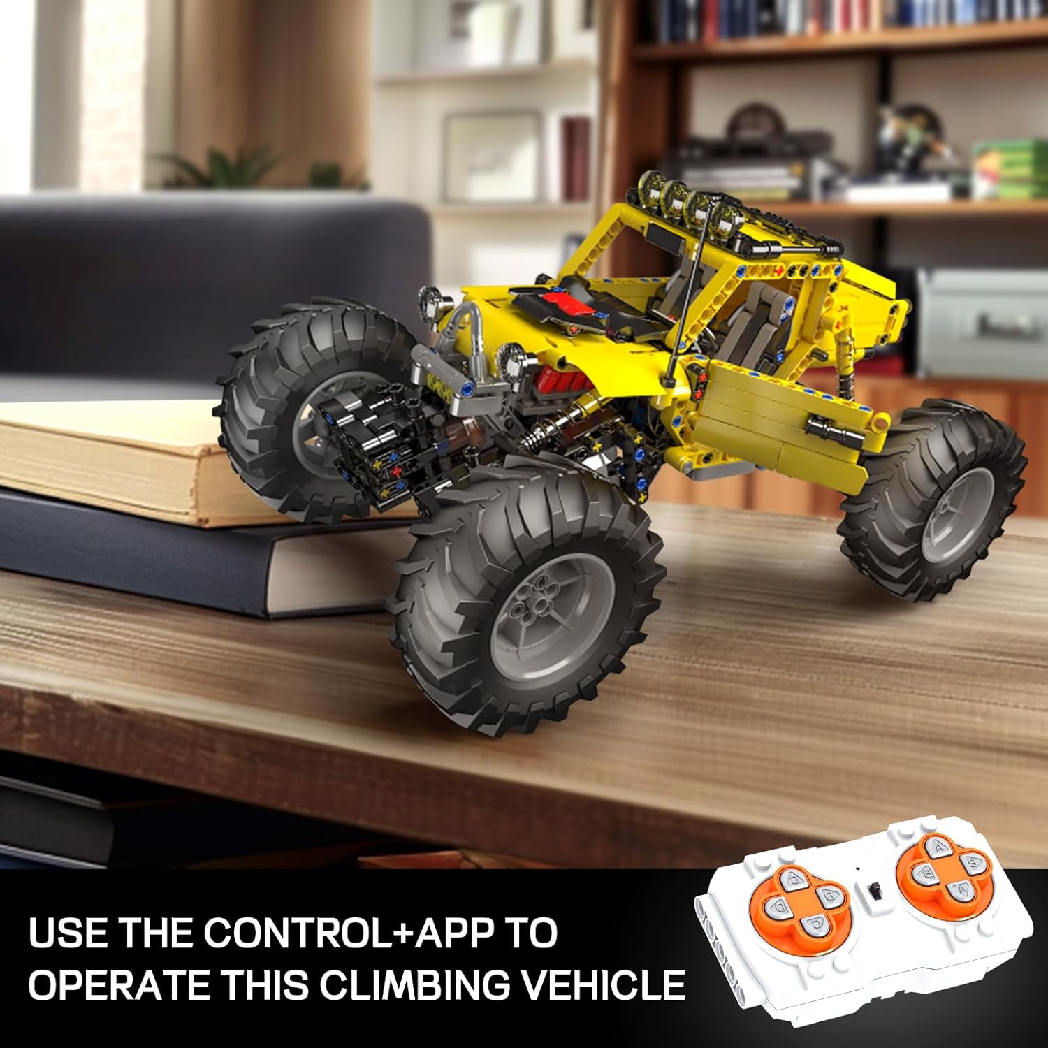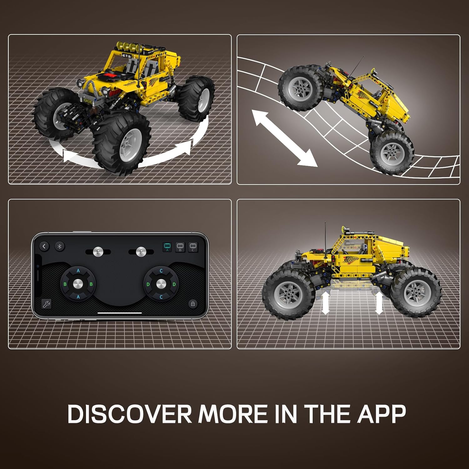 Das besondere an diesem Offroad-Kletterfahrzeug ist neben dem robusten Design oder der Einzelradaufhängung vor allem die Steuerung. Im Gegensatz zu den üblichen Servomotoren setzt dieses Modell L-Motoren als Radnabenmotoren ein. Dank diesem Antriebskonzept verfügt das Fahrzeug über einen permanenten Allradantrieb. In Kombination mit der Mould King App können diese Motoren synchronisiert werden, um gleichzeitig maximale Kraft auszuüben und das stärkste Drehmoment zu liefern.
