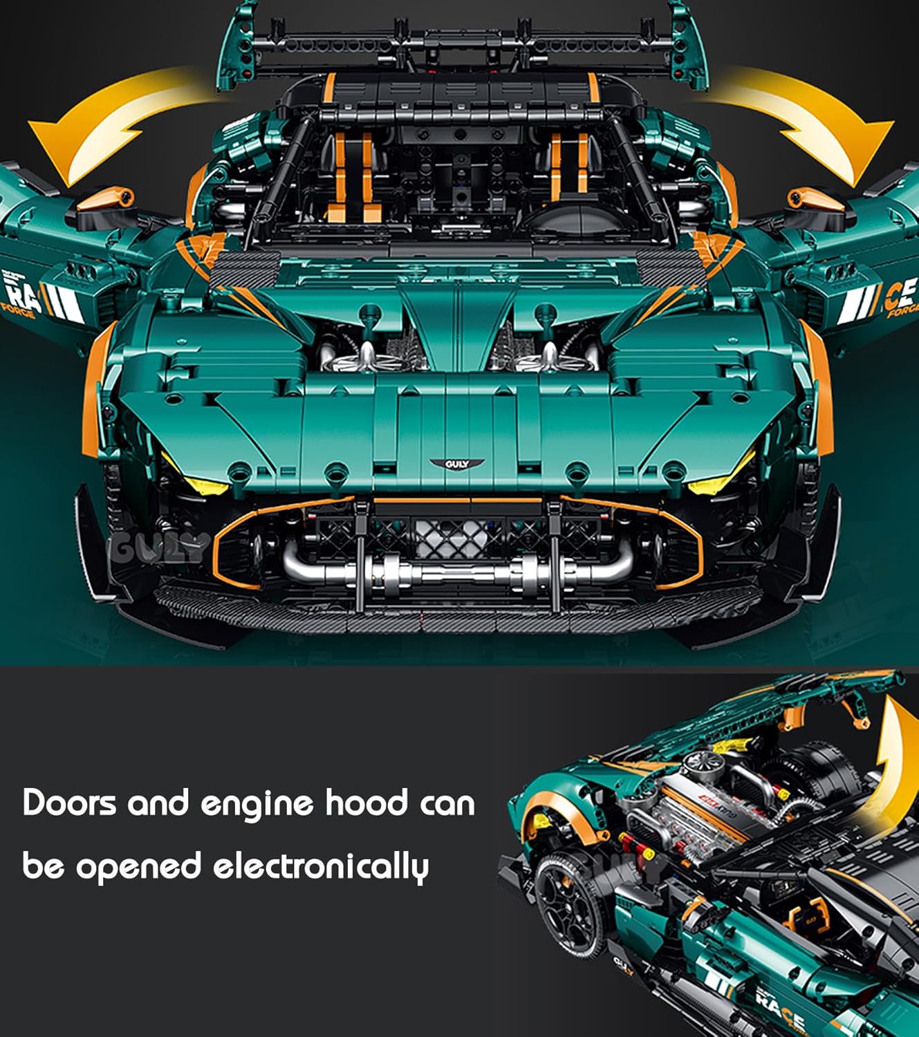 Der GULY 10647 Sportwagen ist ein Technic-Modell im Maßstab 1:8, das die Essenz eines echten Aston Martin Vulcan einfängt. Mit seinen charakteristischen Frontscheinwerfern und dem aggressiven Profil liefert dieses Auto pure Rennenergie in jedem Stein.