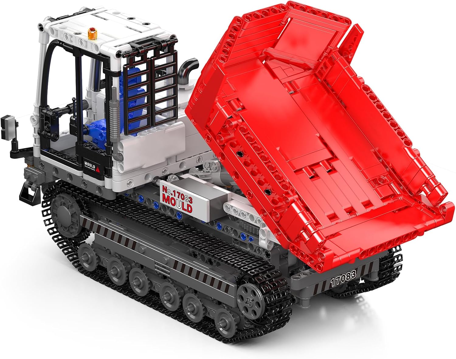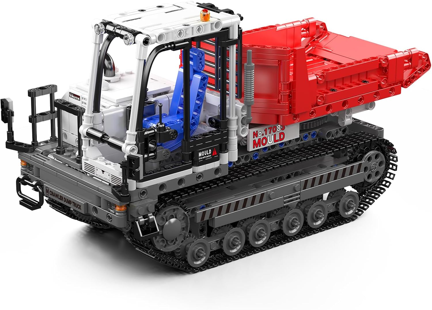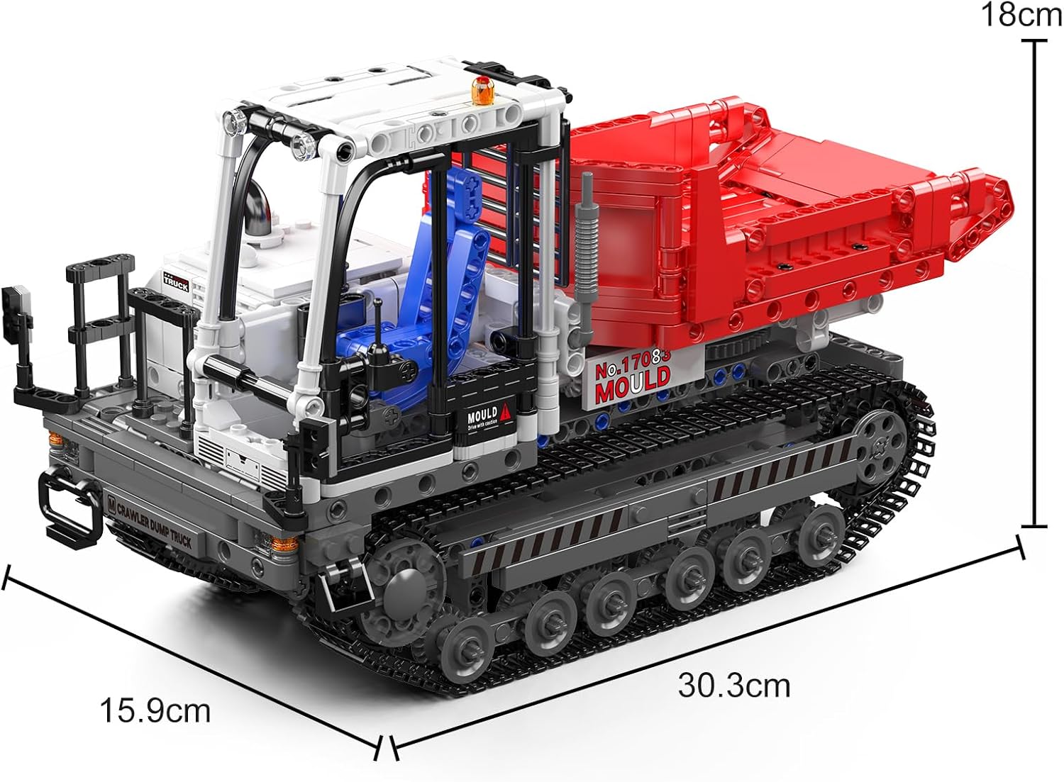 Raupenkipper motorisiert und ferngesteuert mit reichhaltigen Fahrzeugdetails, einschließlich Fahrerkabine, Raupensystem und Kippmulde