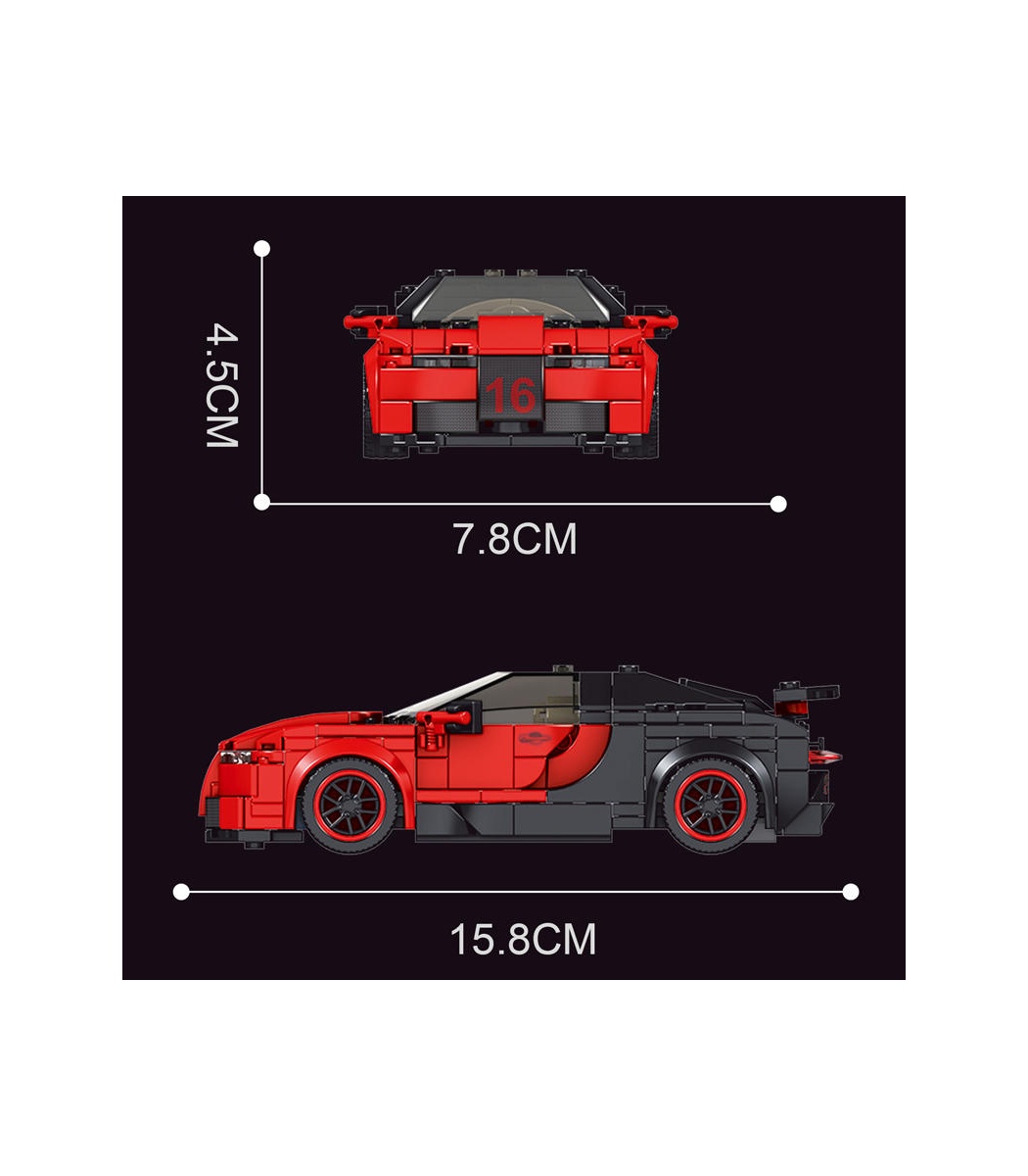 Dieser Rennwagen mit 8 Noppen Breite lässt Klemmbausteinmeister einen der exklusivsten Flitzer der Welt sammeln. Baue und entdecke diese detailgetreue Nachbildung eines Ferrari 488 Pista. Faszinierend aus jedem Blickwinkel und geeignet zum Ausstellen oder für spannende Rennen! Unter der Model S Serie von Mould King versteckt sich ein wahrer Fundus an gelungenen kleinen Sportwagen-Modellen. Faszinierend aus jedem Blickwinkel und geeignet zum Ausstellen oder für spannende Rennen! Inklusive bebaubarer Kunststoff-Vitrine (Noppen an Boden und Deckel )! Set enthält Aufkleber. Die Serie umfasst weitere Modelle, alle mit dazugehöriger Sammelvitrine, die sich auch stapeln lässt.