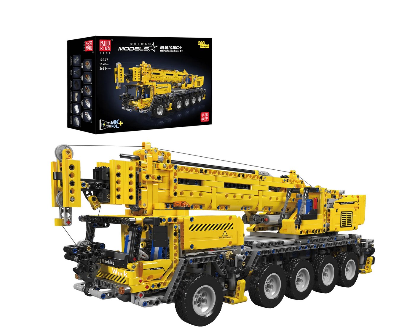 Mit seinen 2688 Teilen ist dieses Modell eine Herausforderung für Baumeister aller Fähigkeitsstufen. Voll ausgefahren beeindruckt der Kranarm mit einer Höhe von 90 cm. Mit den neuen HALL-Motoren und MK CONTROL+ System (Hinweise: Das MK+ System benötigt zwingend die App, die mitgelieferte Fernbedienung funktioniert nur mit den grauen Komponenten).