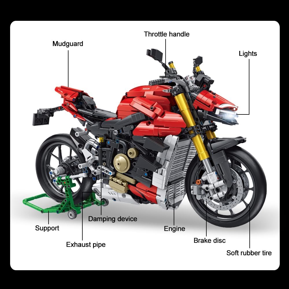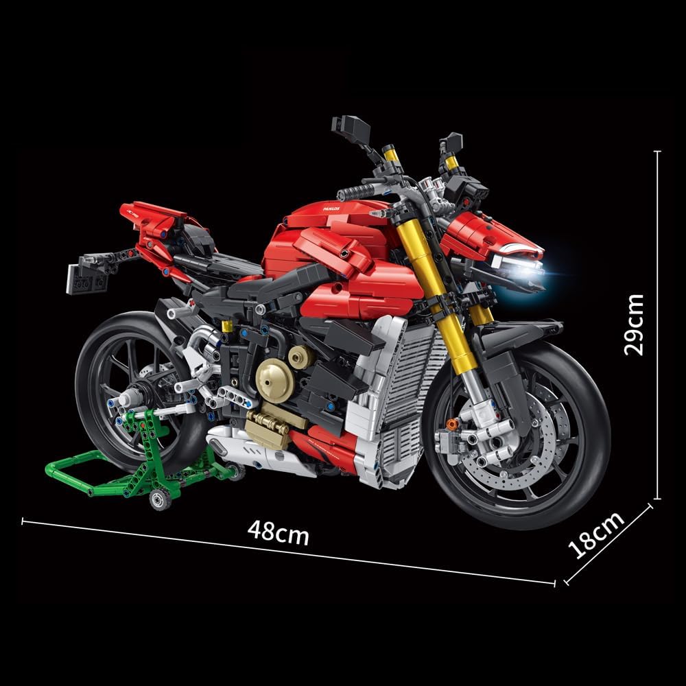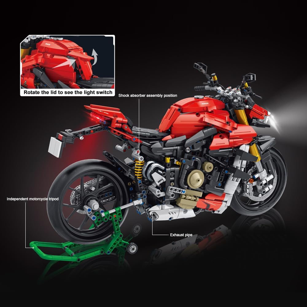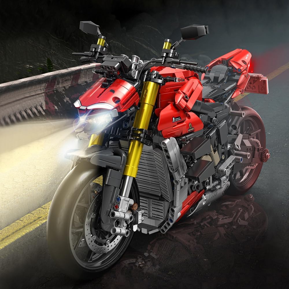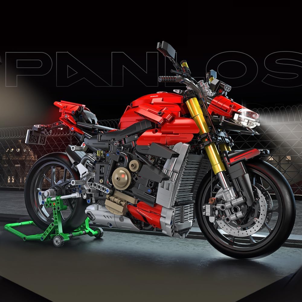 Rot und richtig schnell. Technic Model einer Ducati Streetfighter V4 im Masstab 1:5.