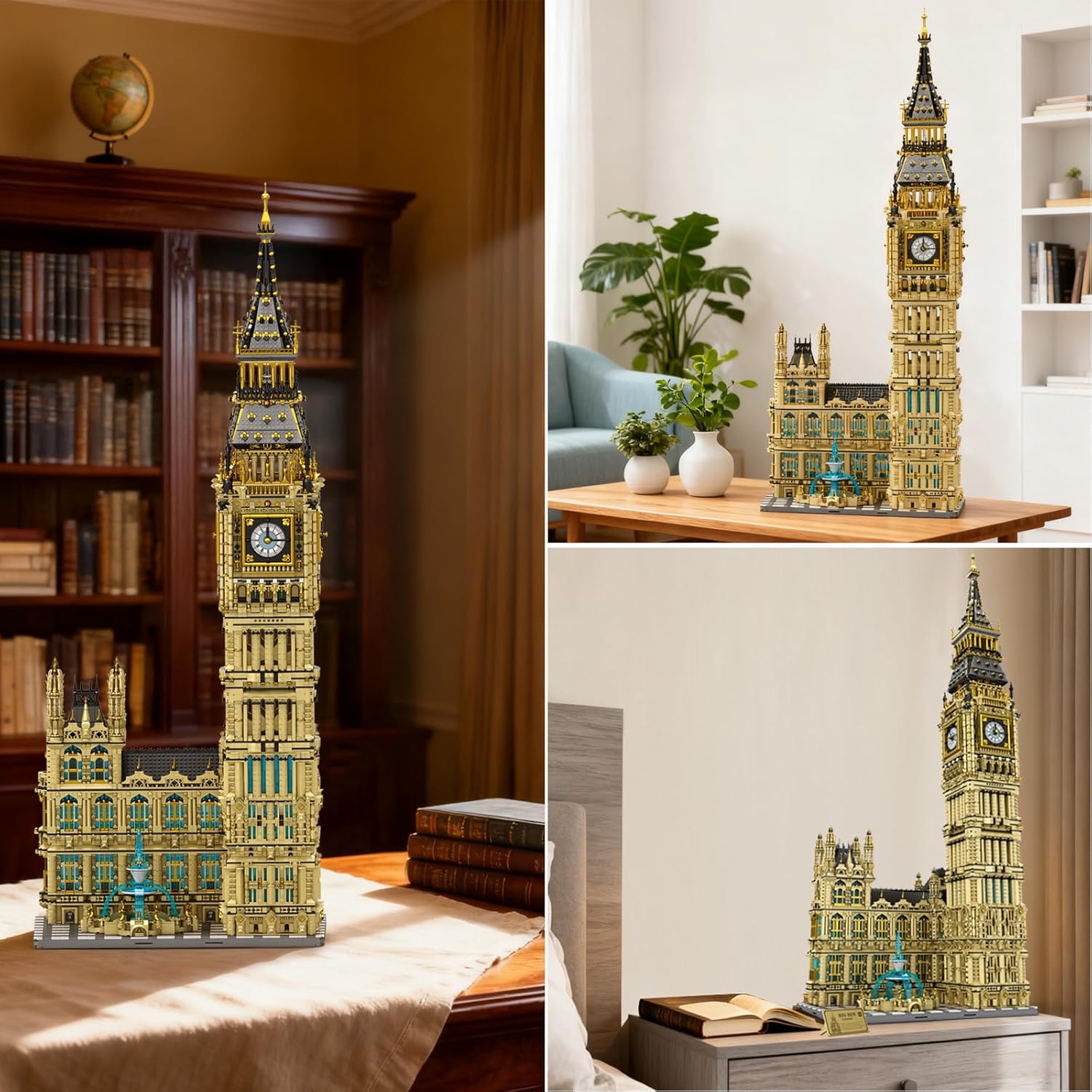 Ein besonderes Merkmal dieses Modells ist die Verbindung aus klassischer Turmarchitektur und moderner Lichtgestaltung. Sobald der Reobrix 55012 THE CLOCK TOWER vollständig aufgebaut ist, entsteht ein imposantes Schaustück, das sowohl tagsüber als auch im beleuchteten Zustand eine starke Präsenz besitzt. Die Lichtelemente setzen gezielte Akzente und lassen Fensterbereiche, Uhrenflächen und strukturelle Details besonders hervorstechen. Dadurch wirkt das Modell nicht nur statisch, sondern erhält eine dynamische Ausstrahlung, die sich je nach Umgebung verändert. Diese Wirkung macht es zu einem echten Blickfang in jeder Sammlung.