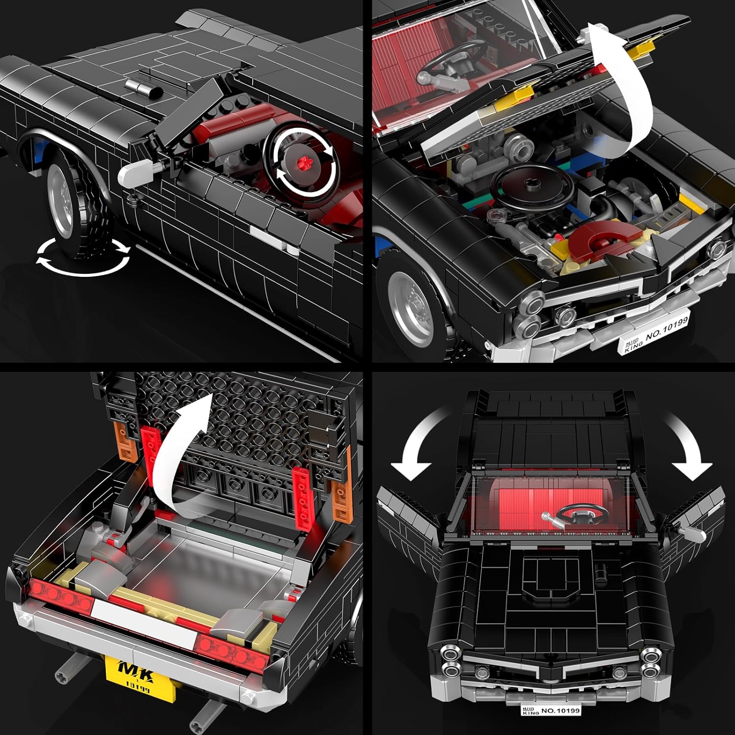 Formschönes Modell eines amerikanischen Strassenkreuzers der Marke Licoln. In der Creativ Idea-Reihe von Mould King finden sich viele gelungenen Sportwagen und Oldtimer-Modellen fürs Regal oder die Vitrine. Vor allem der bekannte MOC-Designer Firas Abu-Jaber sorgt für ästhetisch ansprechenden Nachschub. Funktionen: Türen, die Motorhaube, der Kofferraum lassen sich öffnen und das Dach abnehmen. Die ikonische schwarze Karosserie-Farbe, sowie die stylischen Felgen und die imposante Motorhaube runden den Gesamteindruck ab. Wie immer bei Mould King sind die Steine nach Bauabschnitten in Tüten vorsortiert und die Anleitung leicht verständlich.