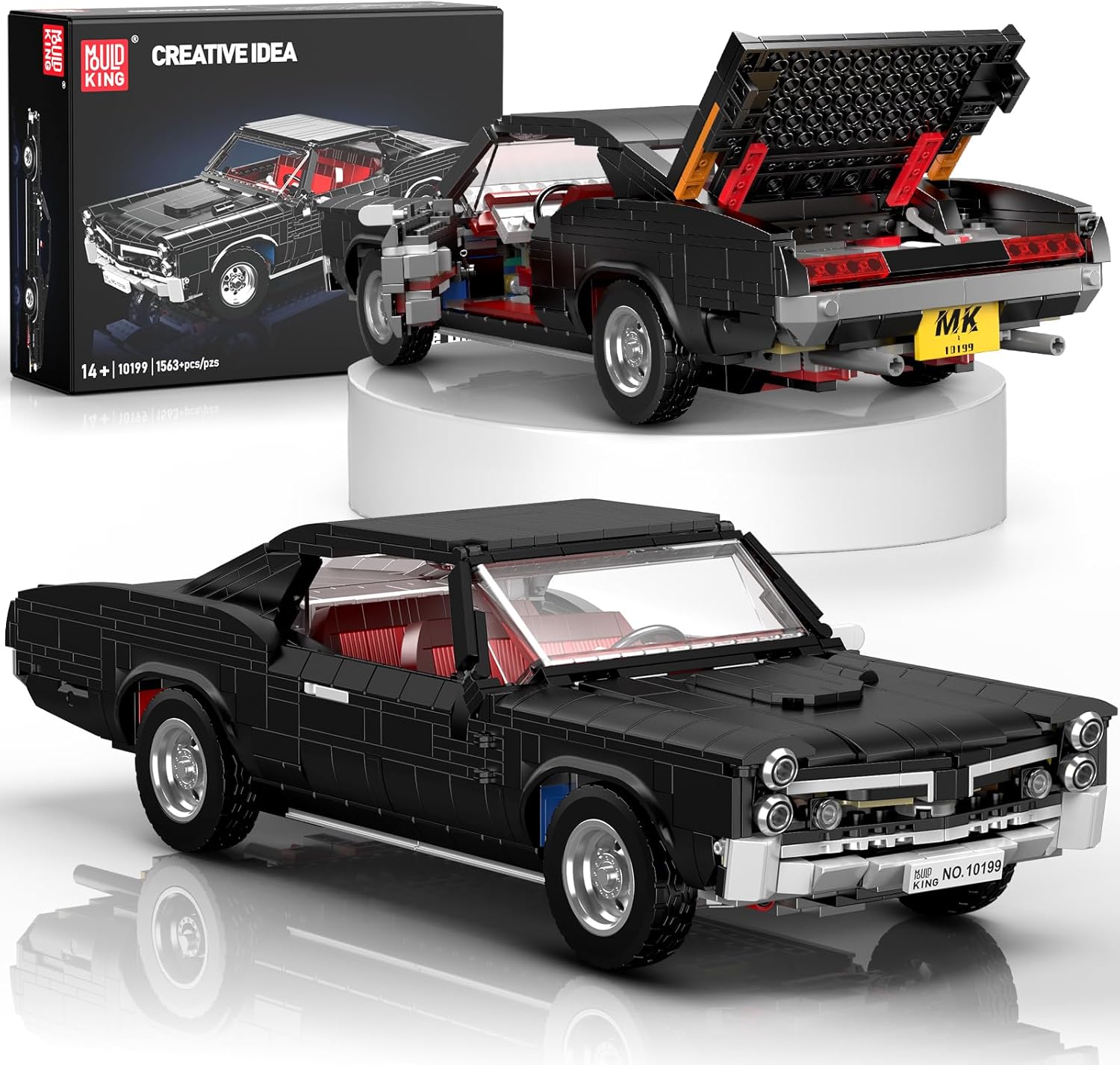 Formschönes Modell eines amerikanischen Oldtimers. In der Creativ Idea-Reihe von Mould King finden sich viele gelungenen Sportwagen und Oldtimer-Modellen fürs Regal oder die Vitrine. Vor allem der bekannte MOC-Designer Firas Abu-Jaber sorgt für ästhetisch ansprechenden Nachschub. Funktionen: Türen, die Motorhaube und der Kofferraum lassen sich öffnen, das Dach abnehmen. Die ikonische Karosserie-Farbe, sowie die stylischen Felgen und die imposante Motorhaube runden den Gesamteindruck ab. Wie immer bei Mould King sind die Steine nach Bauabschnitten in Tüten vorsortiert und die Anleitung leicht verständlich.