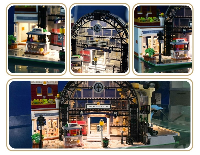 Eine vielzahl überraschender Details und tolle Funktionen erwarten Dich in diesem realistischen Bahnhofsmodell aus über 2700 Klemmbausteinen. Die vollständig transparente Halbkreisform dieses modularen Gebäudes ist einzigartig, modern und charmant, während der Supermarkt neben dem Bahnhof eher in einem klassischen europäisches Design erstellt ist. Eine dezente Beleuchtung sorgt dafür, dass die vielen Details auch im Dunklen gut zur Geltung kommen.