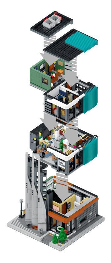 The Office aus der Feder des bekannten MOC-Designer ohsojang ist erfrischender weise mal weder Einzelhandel noch Gastronomie, sondern ein Bürogebäude. Allein dafür kann sich der Kauf schon lohnen. Darüber hinaus bietet es ein schickes, modernen Designs, dazu eine witzige Modularität und großartige Funktionen.