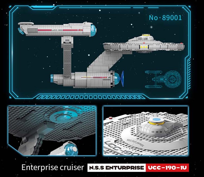 Eine scheibenförmige Untertassensektion, zwei versetzte Triebwerksgondeln und einen zylindrischen Rumpf - fertig ist die NSS Enturprise (sic). Das klassische Föderationsraumschiff der Constitution-Klasse aus der MoYu Spacecraft Serie. Fehlt nur noch der Captain und der Bauspass kann beginnen. Das Set enthält Sticker. Moyu nutzt wie Mould King Klemmbausteine der Firma GoBricks, welche eine ausgezeichnete Qualität und Klemmkraft haben.
