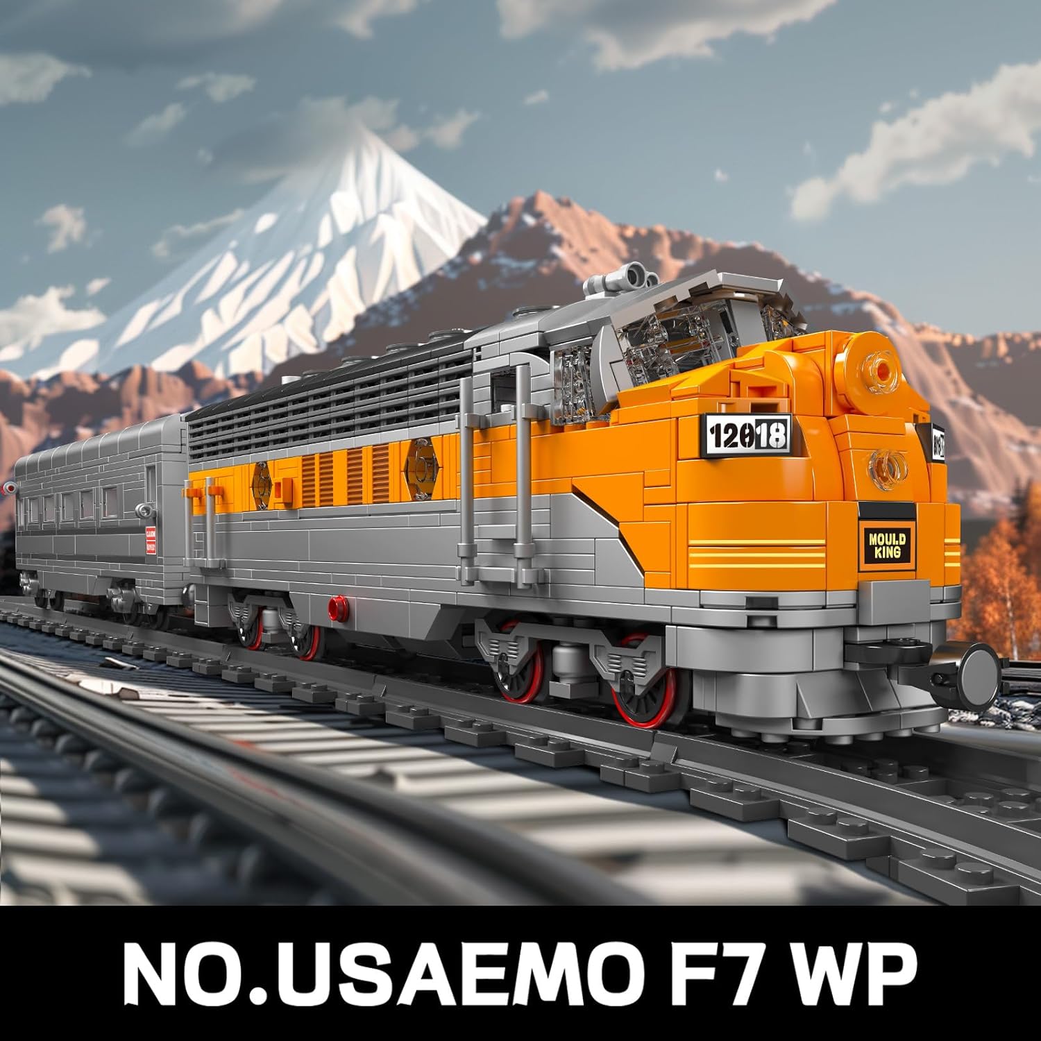 Formschönes und farblich ansprechendes Modell einer EMD SD40-2 Diesel Lokomotive, inklusive Verladekran und LKW. Dieses Set ist mit dem Mould King RWY-Modul motorisiert und wird über die beiliegende Fernbedienung gesteuert. Das RYW-Modul vereint Antrieb, Empfänger und Akku in einem Modul, dass an den Form-Faktor des Eisenbahn-Motor angelehnt ist (aber 1 Noppen breiter). Wie bei der World Railway Reihe von Mould King üblich gehört zum Set auch noch ein Schienen-Oval (120cm x 80cm). Dieses lässt sich in ein vorhandenes Schienen-Netz integrieren, da voll kompatibel mit den führenden Herstellern. Wie immer bei Mould King sind die Steine nach Bauabschnitten in Tüten vorsortiert und die Anleitung leicht verständlich.