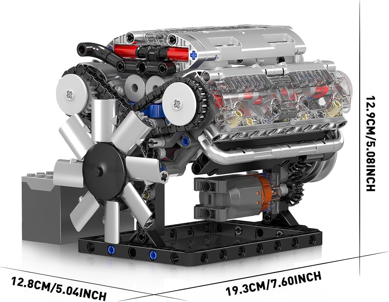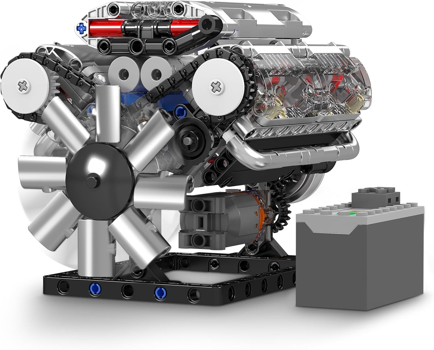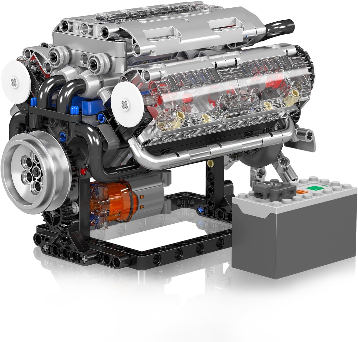 Motorgetriebenes Model eines V-8-Zylinder Verbrennungsmotors. Beinhaltet einen L-Motor und eine Batteriebox.