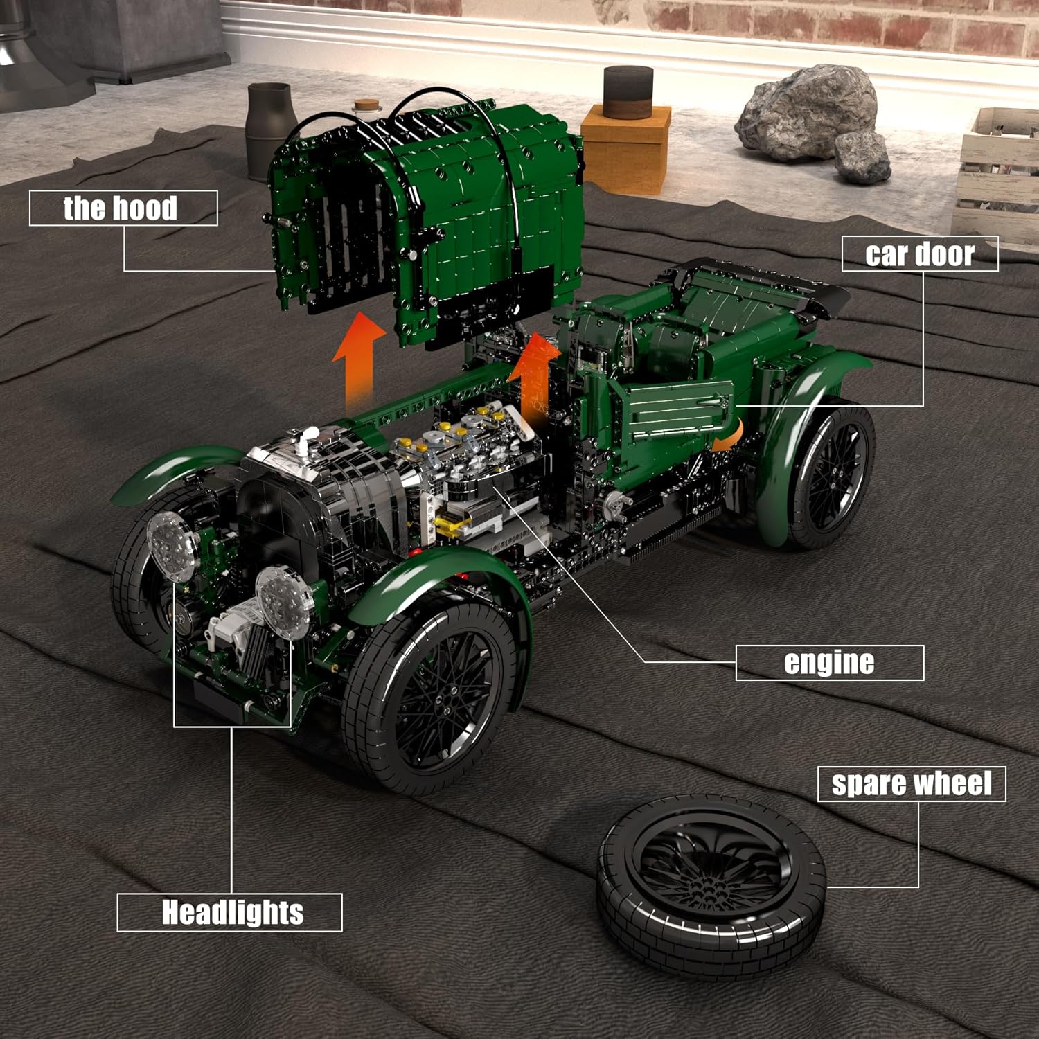 Erschaffe aus fast 4000 Teilen den beeindruckende Bentley Blowe. Ein ikonisches Rennfahrzeug mit präzise nachgebildetem Chassis, Karosserie. Motor, Getriebe, Tank und Antriebssystem. Das Modell hat einen Maßstab von 1:8 und ist ca. 70 cm lang.