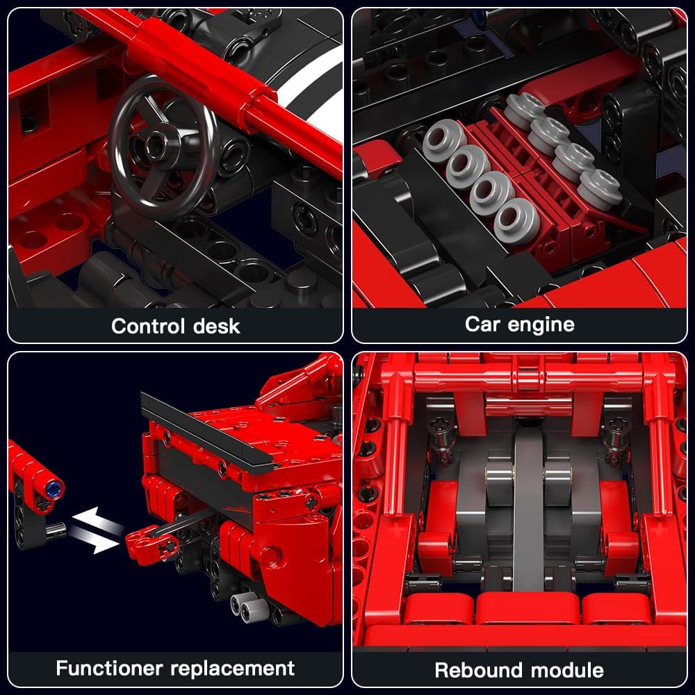 Formschönes Modell eines italienischen Super-Sportwagens Zonda R der Marke Pagani. Ein weiteres Model der Creativ Idea-Reihe von Mould King. Natürlich bietet dieses Modell die gewohnten Funktionen: Türen, die Motorhaube und der Kofferraum lassen sich öffnen. Die klassische Farbkombination aus rot und schwarz, sowie die stylischen Felgen runden das Gesamtangebot ab.
