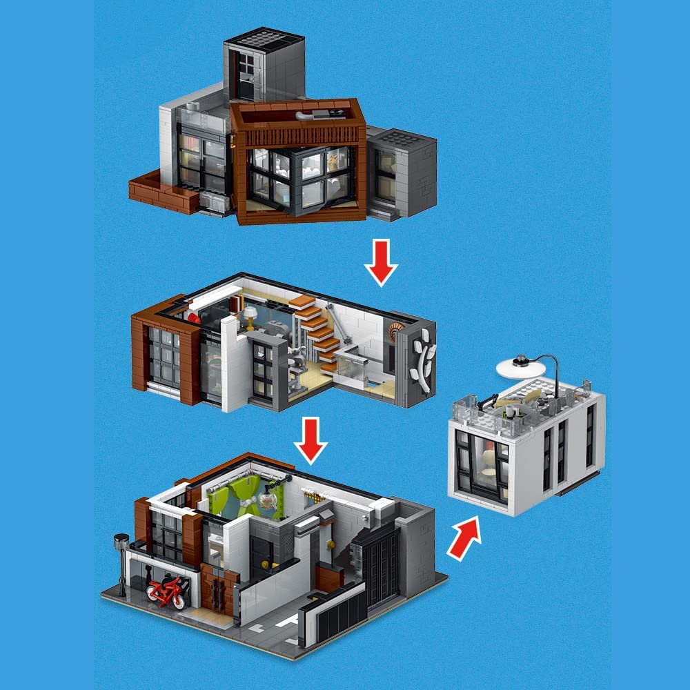 Tauche mit dem Lambda Haus ein in die Welt der modernen Architektur. Diese modulare Villa besteht aus über 3.800 Teilen und hat insgesamt 2 Ebenen. Dieses moderne, zweistöckige Haus ist mit einem USB-LED-Kit ausgestattet, das den offenen Wohnraum, den detailreichen Computertisch und den gemütlichen Essbereich optimal in Szene setzt. Die großen Fenster strahlen sanftes Licht aus und unterstreichen so die moderne Ästhetik.