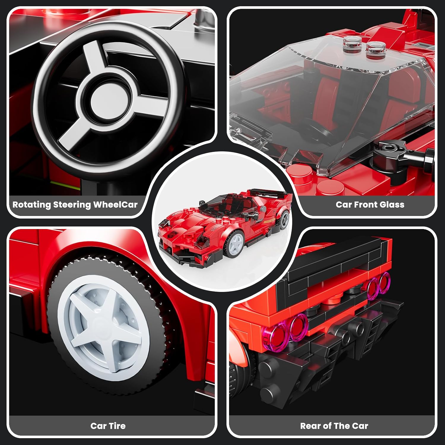 Dieser Rennwagen mit 8 Noppen Breite lässt Klemmbausteinmeister einen der exklusivsten Flitzer der Welt sammeln. Baue und entdecke diese detailgetreue Nachbildung eines italienischen Sportwagens der Marke Ferrari. Faszinierend aus jedem Blickwinkel und geeignet zum Ausstellen oder für spannende Rennen! Unter der Model S Serie von Mould King versteckt sich ein wahrer Fundus an gelungenen kleinen Sportwagen-Modellen. Faszinierend aus jedem Blickwinkel und geeignet zum Ausstellen oder für spannende Rennen! Inklusive bebaubarer Kunststoff-Vitrine (Noppen an Boden und Deckel )! Set enthält Aufkleber. Die Serie umfasst weitere Modelle, alle mit dazugehöriger Sammelvitrine, die sich auch stapeln lässt.