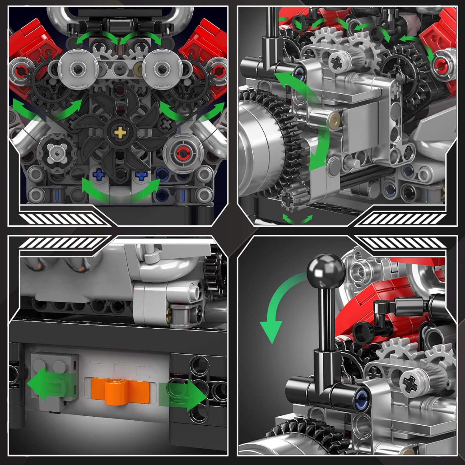 Motorgetriebenes Model eines V12-Zylinder Verbrennungsmotor. Beinhaltet einen M-Motor und eine Batteriebox.