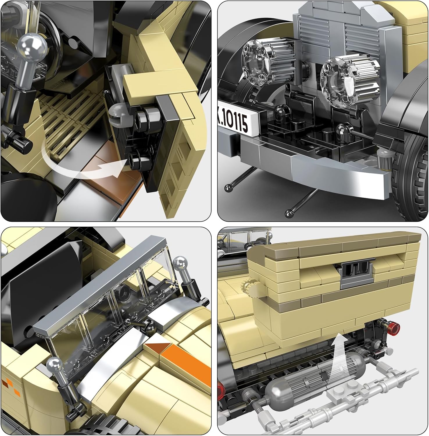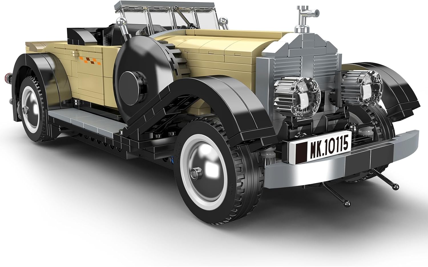 Dieser Oldtimer gehört zu einer ganzen Reihe von Automobil-Sammlerstücken für Erwachsene. Die detailgetreuen Autos sehen erstklassig aus und dürfen in keiner Vitrine fehlen. Zu den 868 Teilen des Sets gehören dutzende verchromte Noppensteine, die den Zierleisten, dem Kühlergrill oder den Radkappen einen besonderen Glanz verleihen.