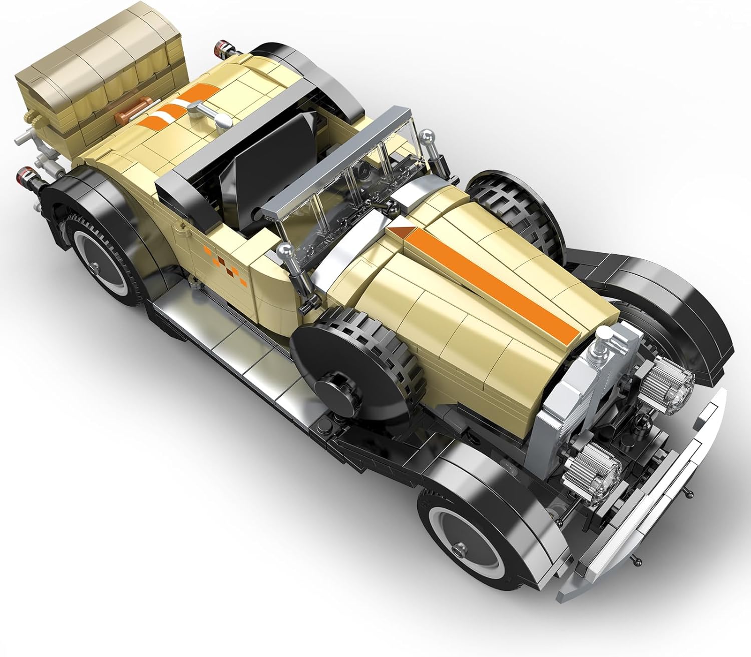 Formschönes Modell eines amerikanischen Oldtimers. In der Creativ Idea-Reihe von Mould King finden sich viele gelungenen Sportwagen und Oldtimer-Modellen fürs Regal oder die Vitrine. Vor allem der bekannte MOC-Designer Firas Abu-Jaber sorgt für ästhetisch ansprechenden Nachschub.