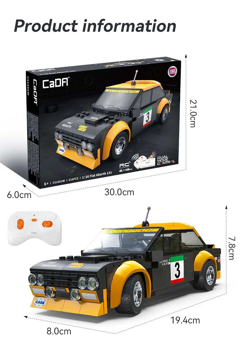 Offizielle Fiat Lizenz, 21 Teile beklebt, 6 Teile bedruckt. Mit Fernsteuerung/Elektrik