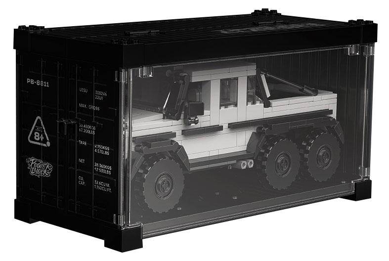 Stabelerbarer Container als Vitirine im Set enthalten - mit Glasfront, Noppen an Boden und Deckel zum Stapeln. Authorisiertes Design von Moonrockmoc, Klemmbausteine der Marke GoBricks.