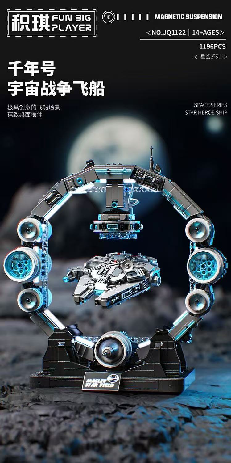 Der Magnetschwebebahnständer erzeugt einen futuristischen Schwebeeffekt, der jedes Regal in ein galaktisches Schaustück verwandelt. Perfekt für Fans des Millennium Falcon
