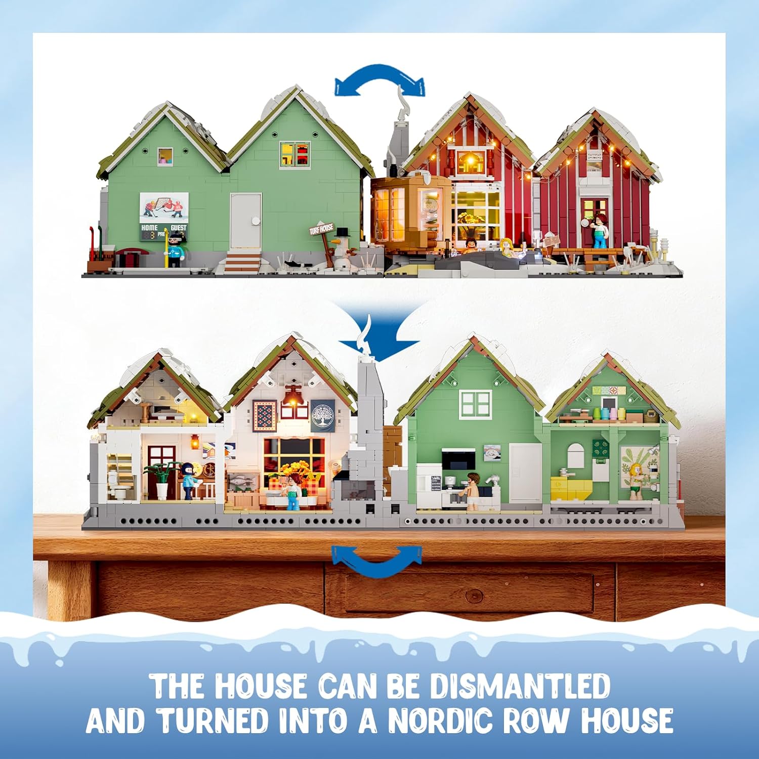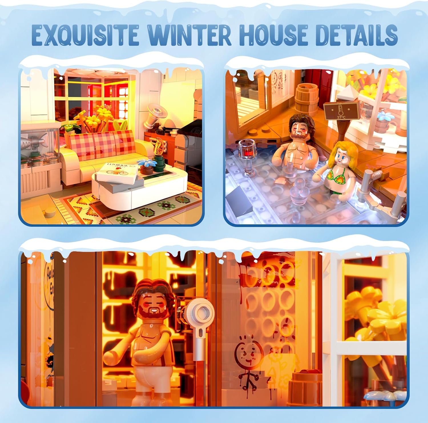 Technisch und gestalterisch beeindruckt das Set durch das raffinierte „Split-and-Combine“-Design: Auf der einen Seite empfängt dich eine stimmungsvolle Spa-Hütte mit Sauna und Hot Spring, auf der anderen Seite entfaltet sich eine lebendige Eishockey-Szene auf gefrorenem See. Zwei vollwertige Dioramen in einem Modell – ein cleverer Kunstgriff, der Abwechslung und doppelten Displaywert schafft. Die 18 LEDs und 4 Lichtleisten sind nahtlos integriert und werden parallel zum Bau eingebettet.