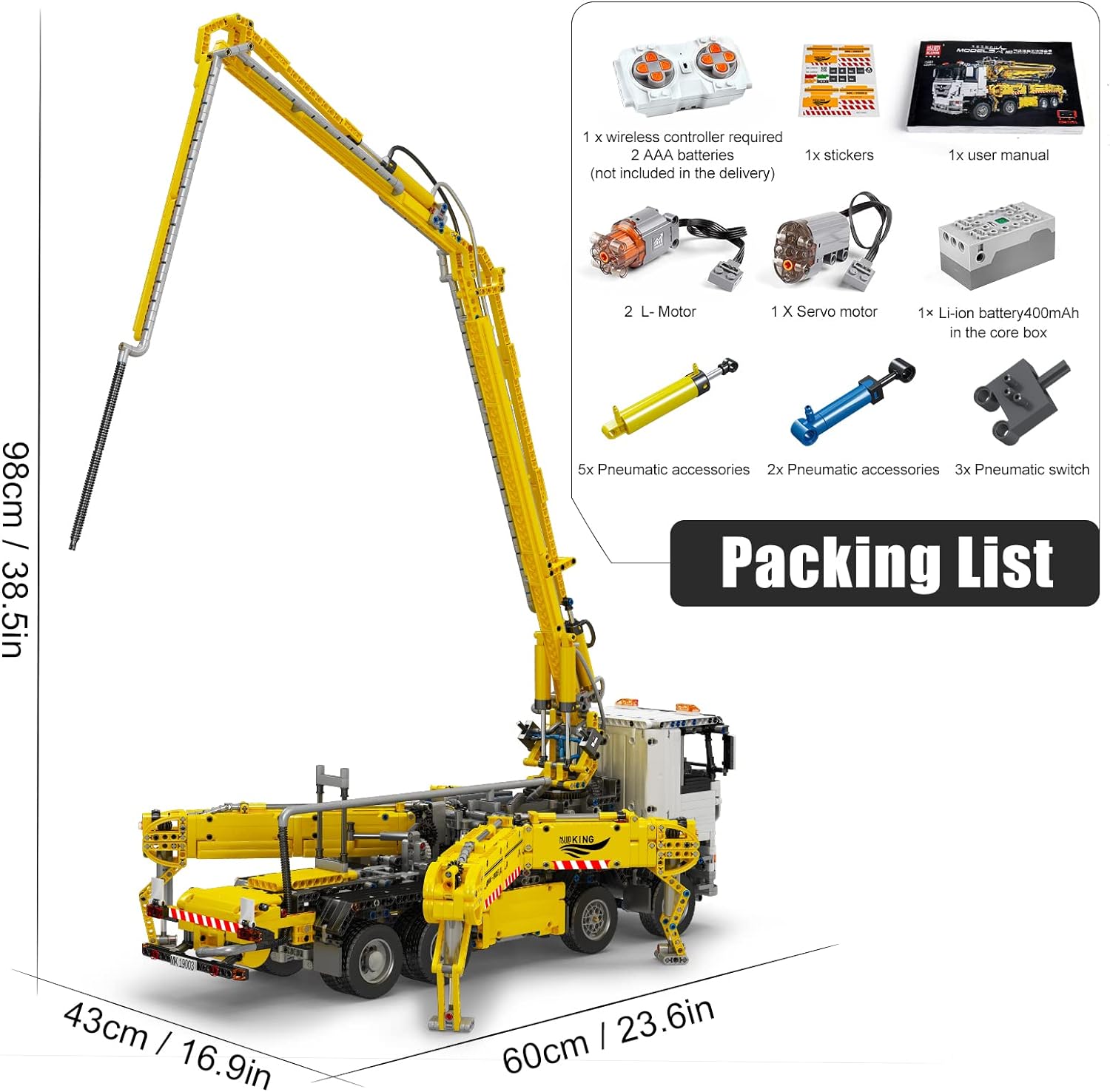 Wir präsentieren das größte Betonpumpen-Klemmbausteinset der Welt. Dieses Modell verfügt über ein komplettes pneumatisches System für den Betrieb des Auslegers und des Betonpumpenmechanismus sowie über mechanische Stabilisierungsbeine, ein Heckteil und vieles mehr. Der Arm der Betonpumpe kann sich bis zu einem Meter in die Höhe strecken.