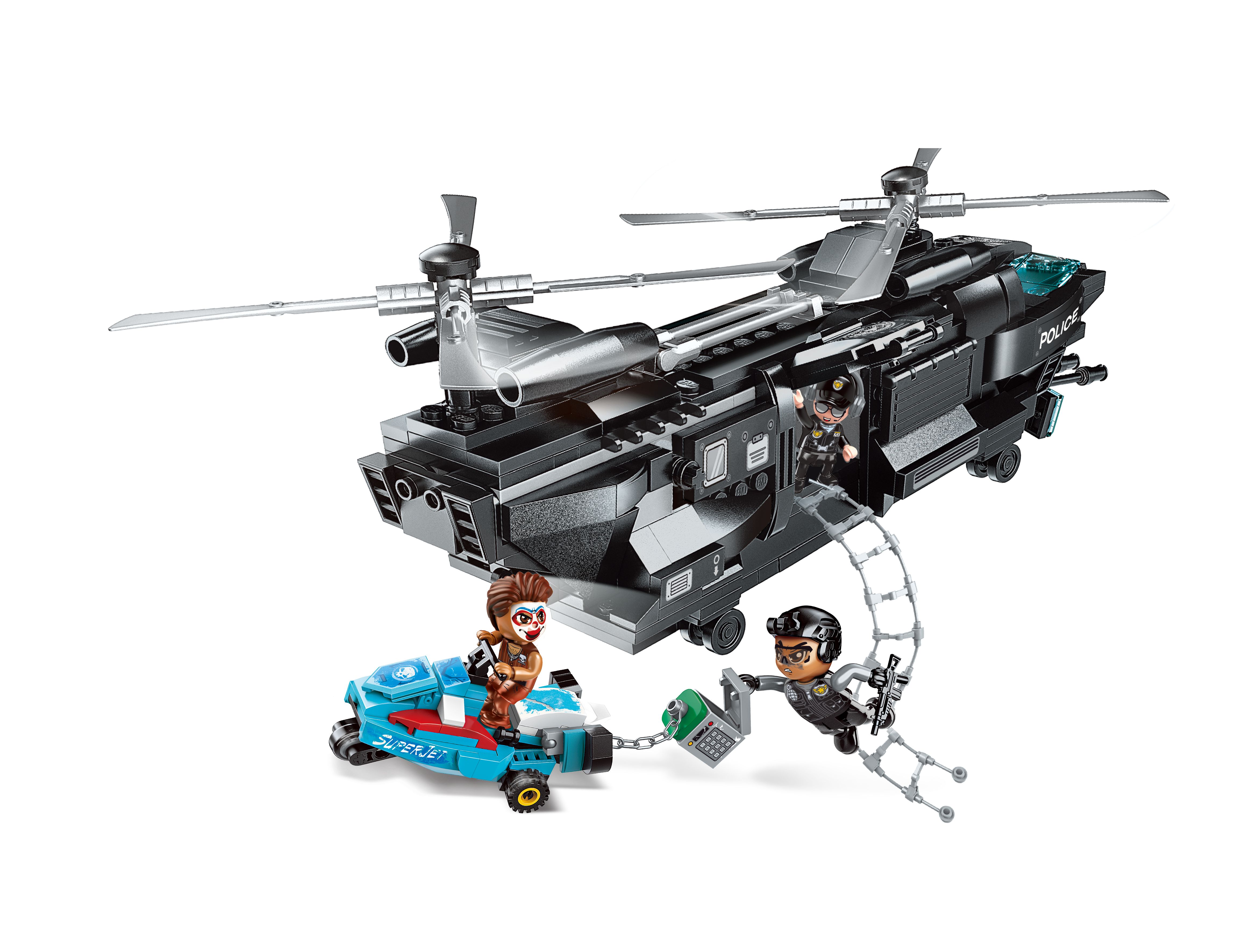 Verbrecherjagd zu Wasser und in der Luft mit SWAT-Helikopter und Jetski.
