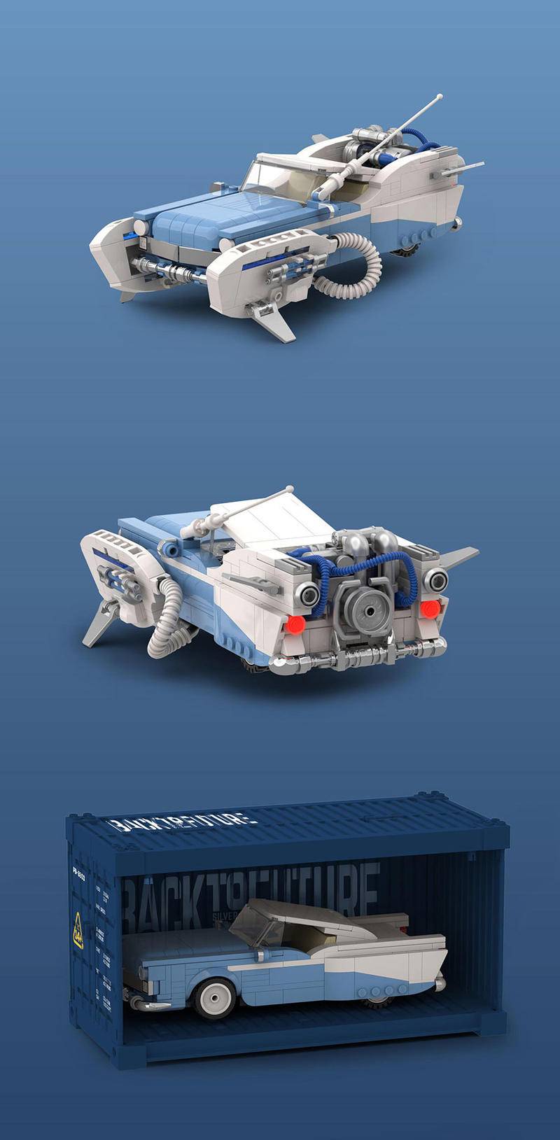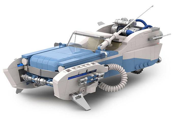 Das Fahrzeug kann in einer normalen Strassenvariante, sowie als futuristisches Flugauto aufgebaut werden.