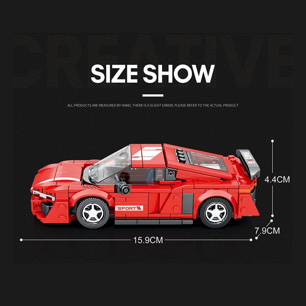 Kleiner Sportwagen im Maßstab 1:24, ein roten Flitzer aus der italienischen Sportwagen-Schmiede Ferrari. Goldene Felgen und eine detaillierte Umsetzung der Vorlage SP3. Besonderes Highlight und in diesem Massstab einzigartig: die Flügeltüren lassen sich öffnen. Die Steine-Qualität ist durchgehend gut, die Anleitung einfach aufgebaut und die Teile in nummerierte Tüten zu den jeweiligen Bauabschnitten sortiert. Ergänze Deine Miniatur-Auto-Sammlung mit diesem tollen Modell - passt auch in die Display-Box von Mould King.