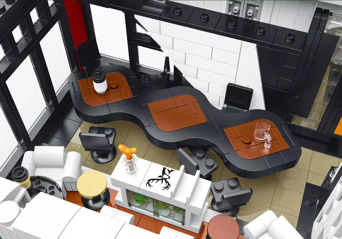 Mork setzt seine Kooperation mit dem MOC-Designer Oh So Jang, ein echten Star der Szene, mit diesem wunderschön im Barock-Stil gestaltetem Seafood-Restaurant weiter fort. Dieses Flying Lobster getaufte Gebäude überzeugt durch seine komplexe, barocke Fassade und ein hohes Maß an Modularität. Der Innenraum strotzt nur so vor Details: Sei es die aufwendig gestaltete Bar im ersten Obergeschoss (welches sich zudem aufklappen lässt), oder die idyllisch gestaltete Dachterasse mit Holzkohle-Grill; die Detail-Verliebtheit des Designers ist auf jedem Quadrat-Milimeter zu erkennen. Der Bau ist mit seinem großen Umfang, den 4132 Teile so mit sich bringen, nichts für komplette Einsteiger, mit ein bisschen Erfahrung und Geduld bietet das Set jedoch mehrere Abende gefüllt mit tollem Bauspaß. Die Bauabschnitte sind relativ umfangreich. Das Set beinhaltet 26 bedruckte Teile.