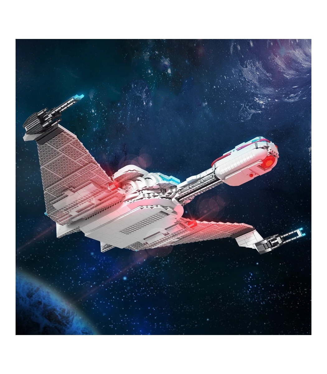 nuqneH! tln Duj. Damit wäre auch schon alles gesagt. Für alle die kein klingonisch sprechen: Aus fast 2500 Klemmbausteinen entsteht ein Schlachtschiff der Vor'cha-Klasse. Am hinteren Ende des Schiffes verlaufen zwei Pylone vom Grundkörper weg, an denen jeweils eine Warpgondel angebracht ist. Aktiviere die Tarnvorrichtung (nicht im Lieferumfang enthalten) und der Bauspass kann beginnen. Das Set enthält Sticker. Moyu nutzt wie Mould King Klemmbausteine der Firma GoBricks, welche eine ausgezeichnete Qualität und Klemmkraft haben. Sehr gute Qualität der Bausteine. 100% kompatibel mit den Klemmbausteinen anderer führenden Hersteller. Gut verständliche Bauanleitung beiliegend.